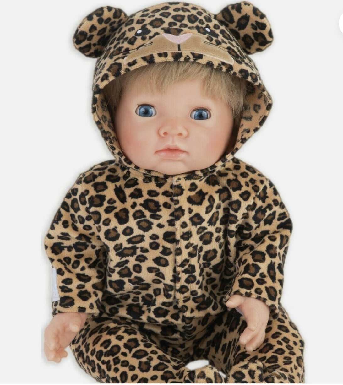 This cute Chad Valley Tiny Treasures Leopard Outfit onesie fits your doll wonderfully and gives them something soft and snugly to dress up in. The super-soft outfit has a charming added detail with a face embroidered on the hood and paws embroidered on the soles of the feet. If possible your Tiny Treasures doll will look even more adorable than usual when dressed in this outfit!General information:Designed to fit a 44 cm dollDoll sold separatelyIncludes outfit only7 assorted characters to collect - 1 suppliedFor ages 3 years and over