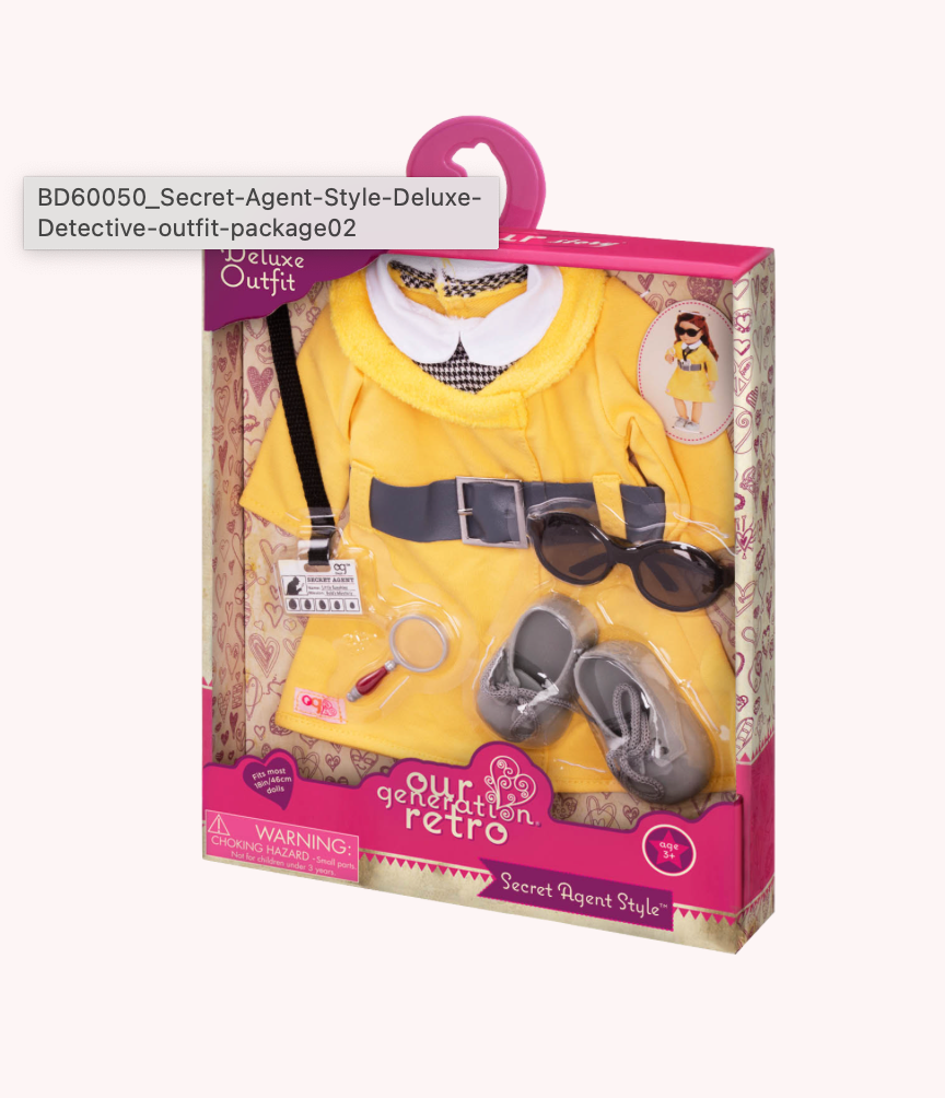 Your dolls can search for clues and solve the case in the Our Generation Secret Agent Style retro detective outfit for 18-inch dolls! This vintage-inspired doll outfit will reveal the secrets of classic retro style!