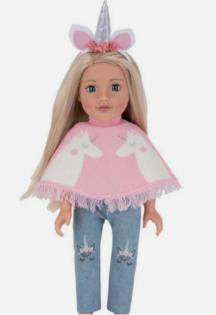 - This unicorn poncho is designed to fit an 18"/46cm Designafriend doll but it will also look great on most other dolls of a similar size.