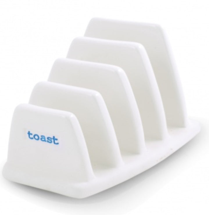 Original Keith Brymer Jones designer toast rack with toast debossed by hand into the super white porcelain body by the skilled hand of a master craftsman. Part of the Keith Brymer Jones Word Range.